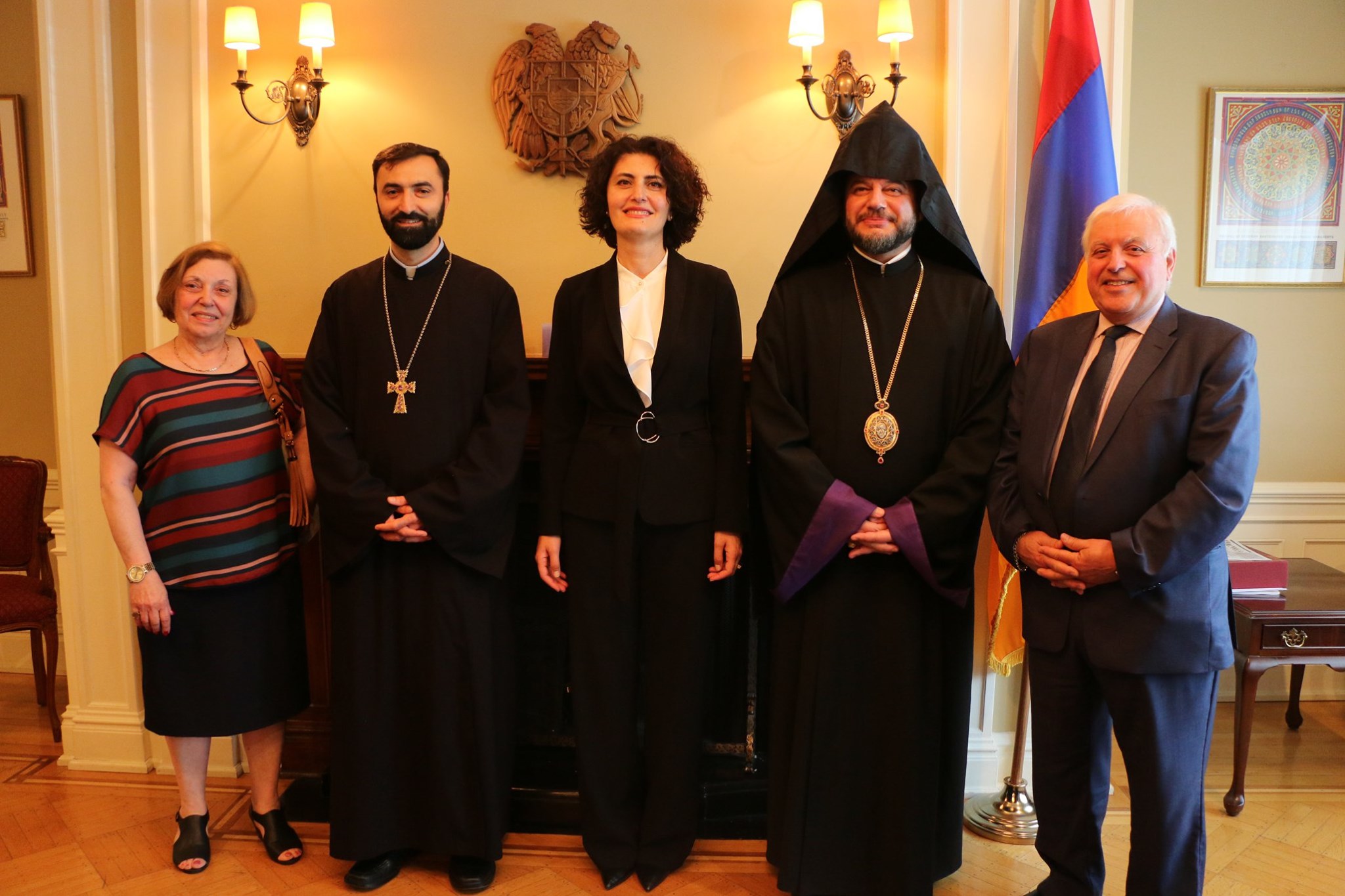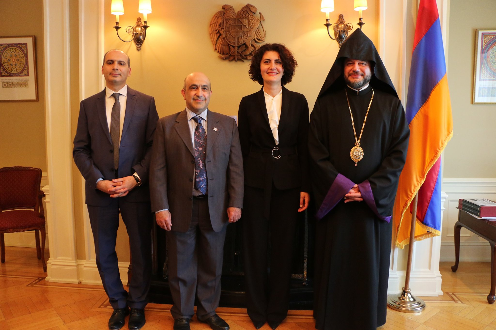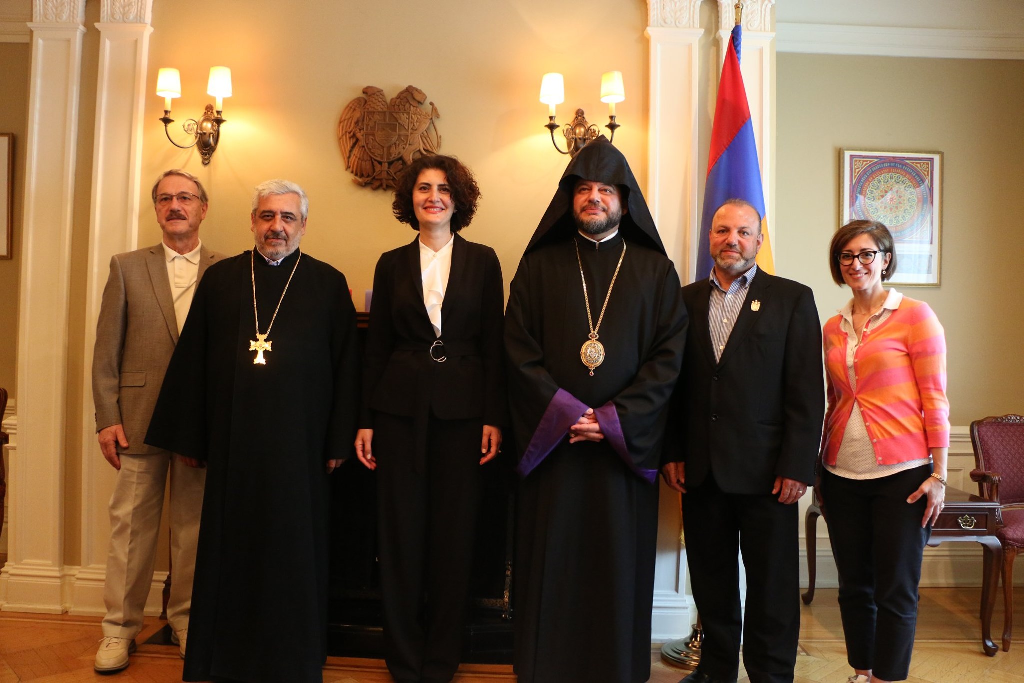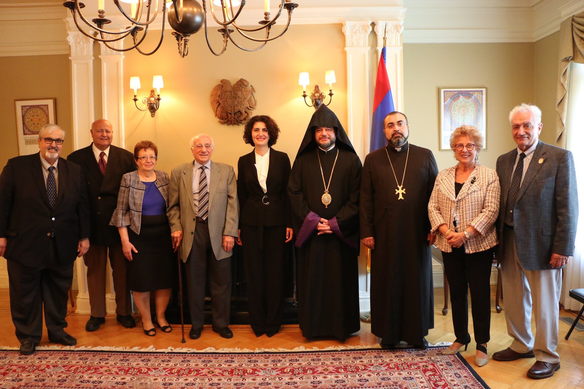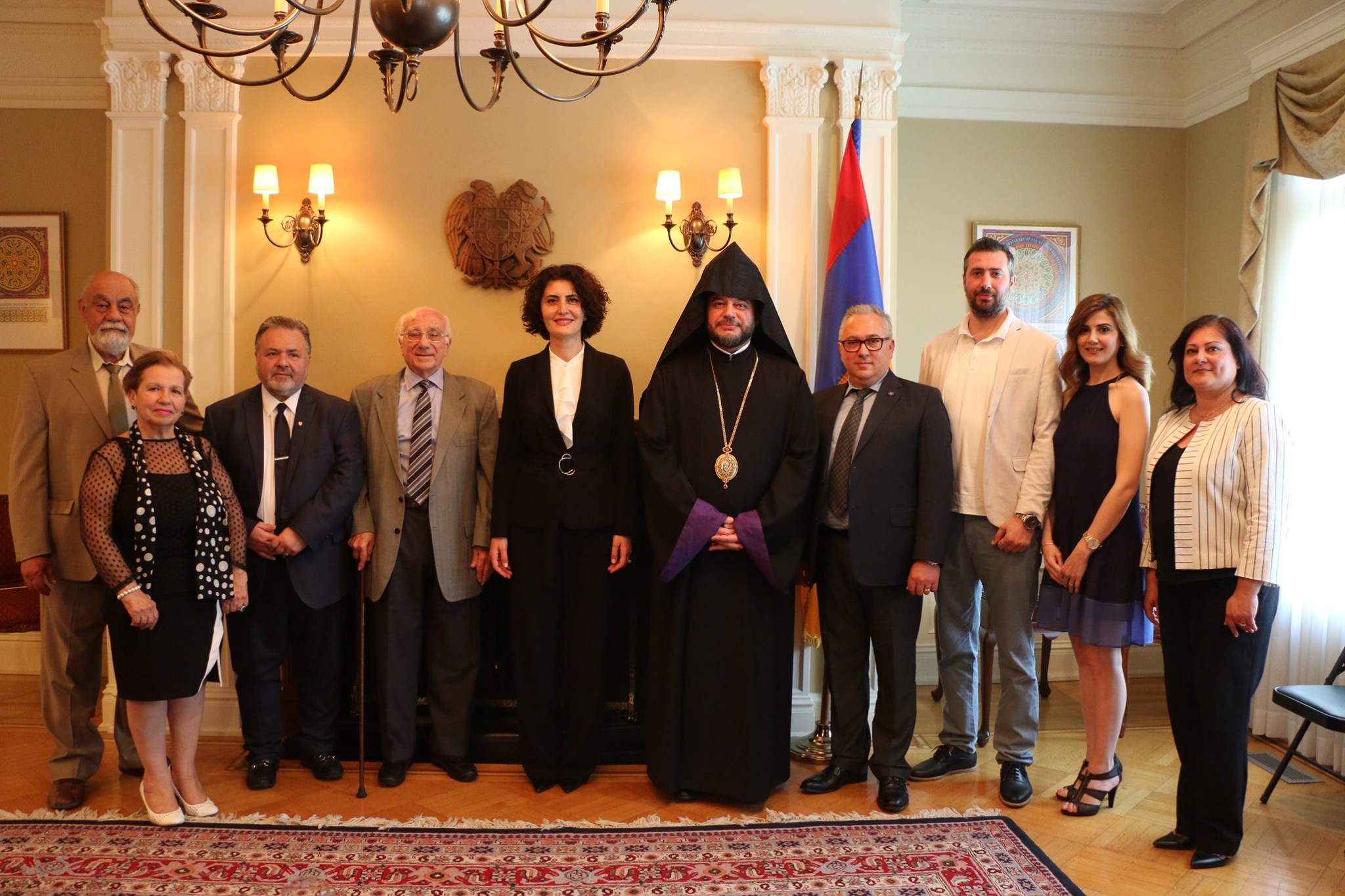 On June 21, 2019, a delegation of the Armenian community, under the leadership of His Grace Bishop Abgar Hovakimyan, Primate of the Armenian Diocese of Canada, paid a visit to the Embassy of Armenia in Canada to meet and greet Her Excellency Anahit Harutyunyan, the Ambassador-designate of the Republic of Armenia to Canada.