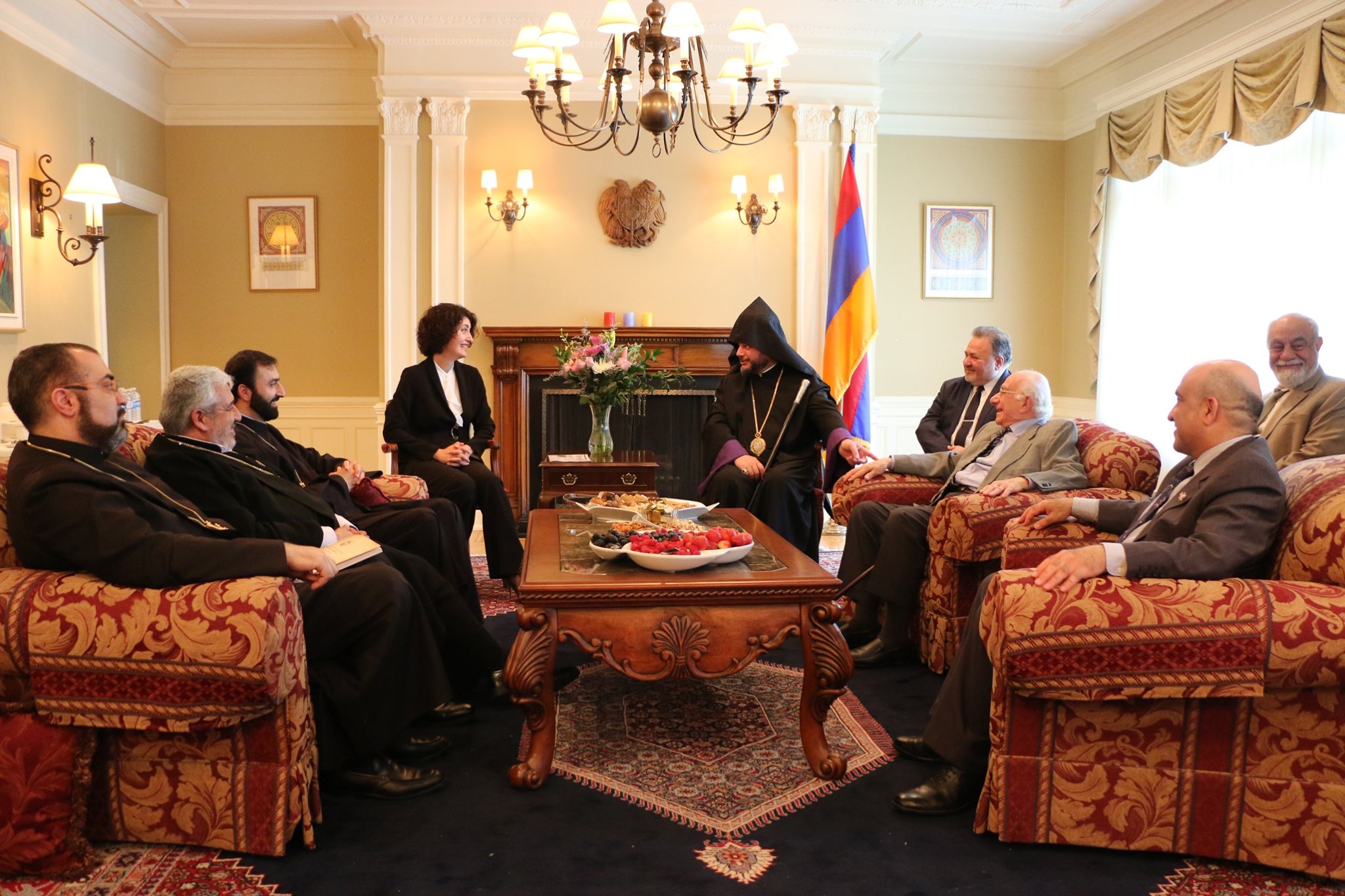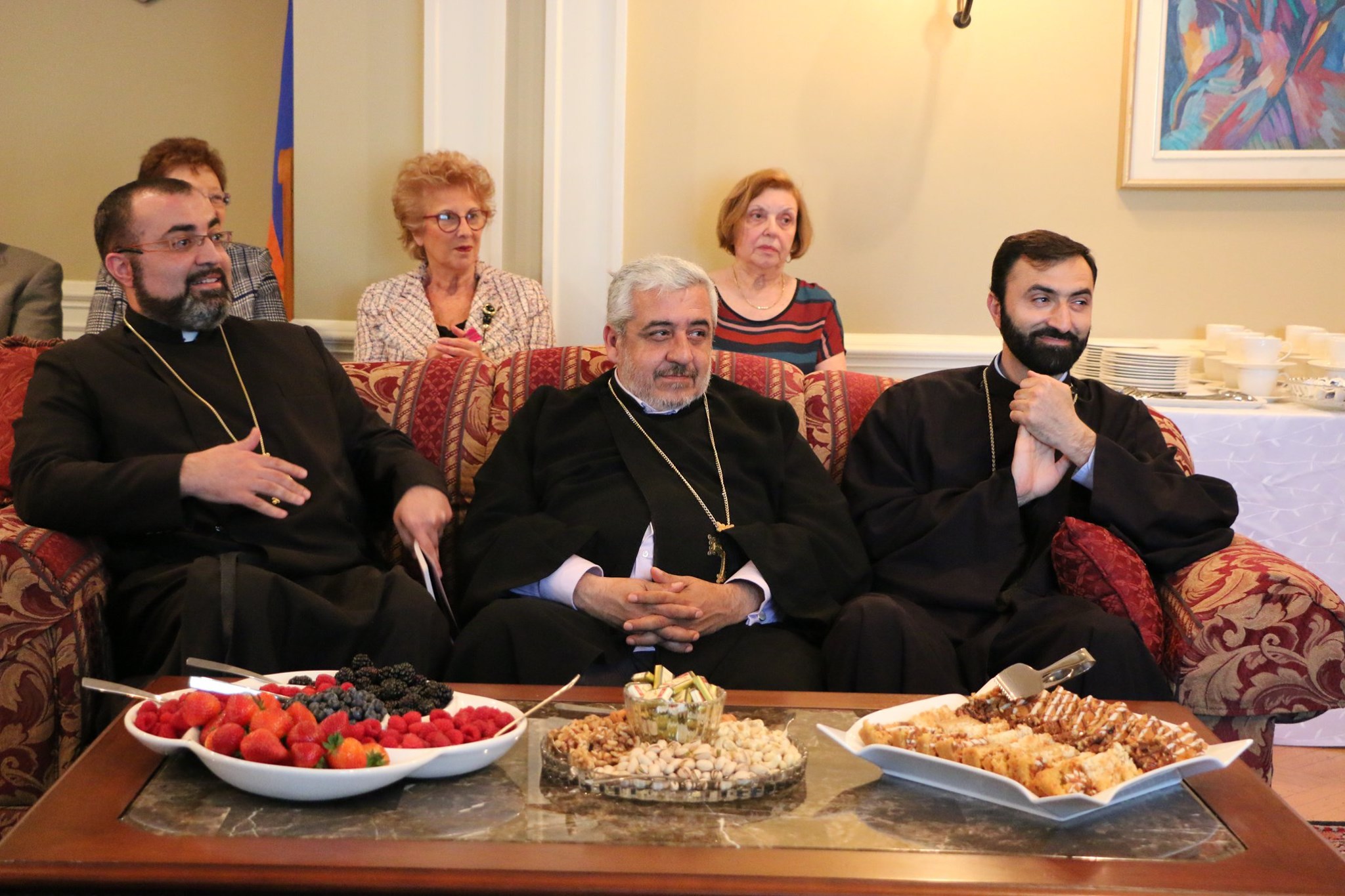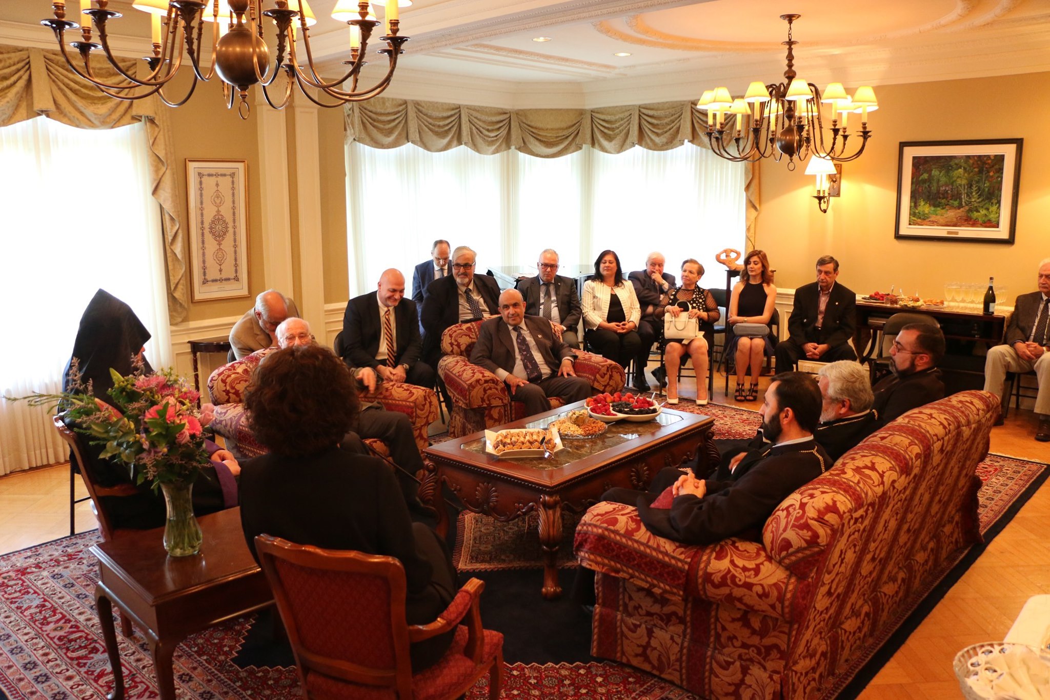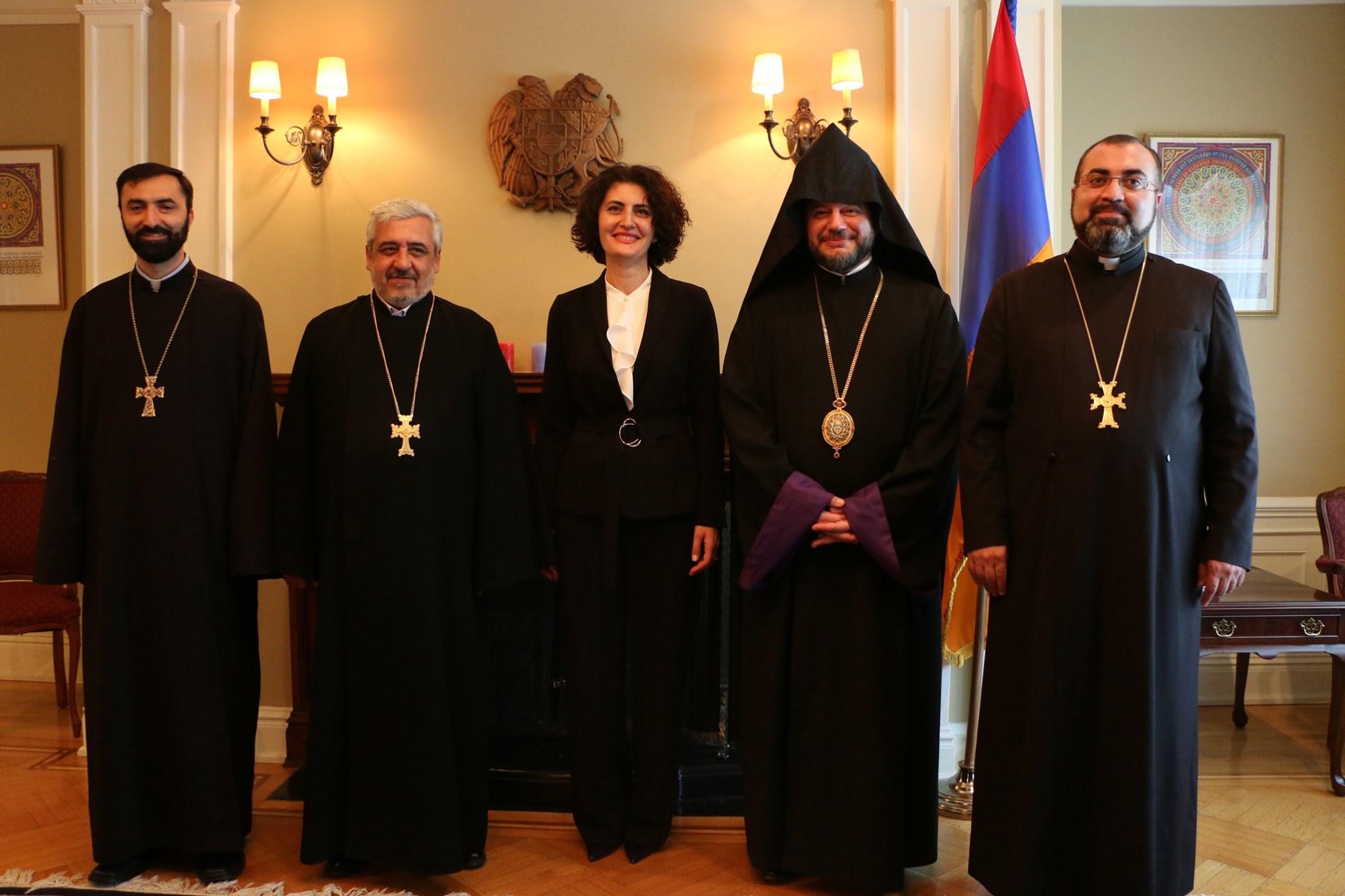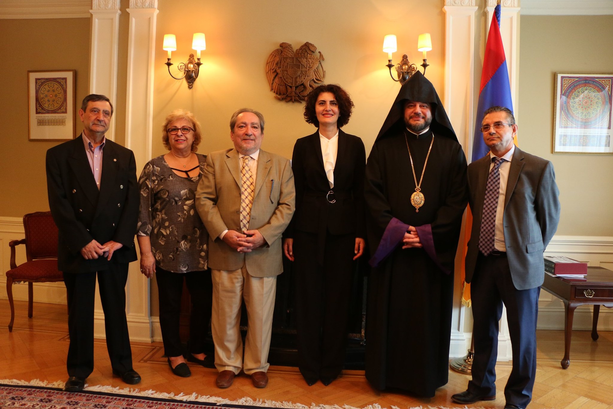 On June 21, 2019, a delegation of the Armenian community, under the leadership of His Grace Bishop Abgar Hovakimyan, Primate of the Armenian Diocese of Canada, paid a visit to the Embassy of Armenia in Canada to meet and greet Her Excellency Anahit Harutyunyan, the Ambassador-designate of the Republic of Armenia to Canada.