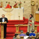 His Grace, Bishop Bagrat Galstanyan thanked the Founders of the church for their vision which guided them to found St. Vartan twenty years ago. He thanked Der Myron for his service to the community. He also thanked the parish council as well as all the volunteers serving St. Vartan. Then he addressed his message to the youth and the children around him encouraging them to be good stewards of the church in the future while remembering that their parents support the church and the community for their children. He ended his message by congratulating the Parish on the 20th anniversary of the founding of the church and encouraged them to endeavor to find a permanent home for St. Vartan.