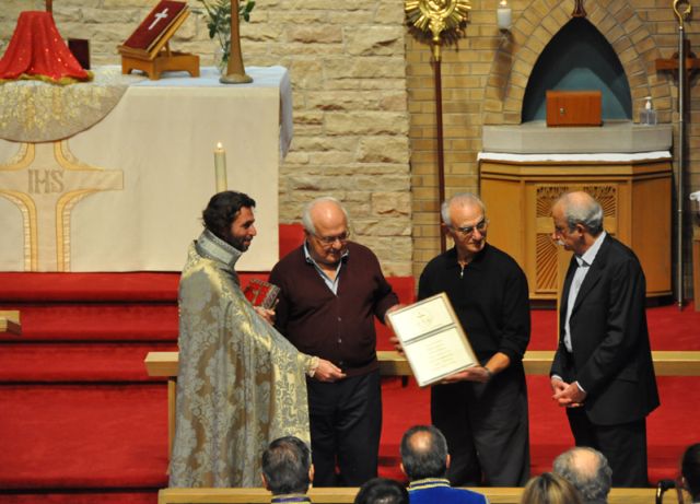 Holy Divine Liturgy was celebrated by the parish priest Rev. Fr. Myron Sarkissian. Following the Divine Liturgy, a requiem memorial service was held in memory of the Armenian and Canadian soldiers, with respect of the passing of the recent Remembrance Day Observance.. In his sermon, Fr. Myron asked the people to be thankful even in times of difficulty, because difficulties help us to strengthen our faith and trust God. After the sermon the chairman of the parish council Mr. Vasken Altounian gave a summary of the parish activities during last months. He thanked all the supporters, and special thank and an appreciation plaque and an Armenian cross was given to Mr. And Mrs. Mardig and Lilian Sevadjian for their many years of dedication and support to the parish. On this special occasion Rev. Fr. Myron thanked the founding fathers of the parish and announced the new plaque with the names of the founding members. The founding and the first parish council members were; Mr. Tatyos Arslan, Dr. Berdj Artinian, Mr. Yetvart Balian, Mr. Hratch Bedrossian, Mr. Vahe Davidkhanian, Dr. Gaspar Israelian and Berdj Shalvardjian. Dr. Artinian, Mr. Davidkhanian and Mr. Bedrossian were present to receive the plaque. Fr. Myron also thanked His Excellency Armen Yagnian for his visit. This was the first first visit of an Armenian Ambassador to St. Vartan parish of Mississauga. A small token to mark this occasion was presented to the Ambassador.