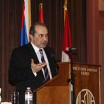 In addition to presenting the current state of the foreign policy of Armenia, Mr. Yeganyan discussed the migration rate in Armenian as well as Nagorno-Karabakh issues and its possible resolution stage. Further, he outlined the activites of the Armenian Embassy in Ottawa and the achivements and challenges the diplomatic corps faces.