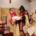 The Divine Liturgy was offered by the Rev. Fr. Serop Azarian, in the Anglican Church rented by the community. The Badarak created sacred spiritual atmosphere in which all church members participated in the Holy Liturgy. The Primate took this opportunity to honour a war veteran and dedicated member of the community, Mr. Arthur Kuderian, and presented him with the medal of the Holy Cross of the Diocese.