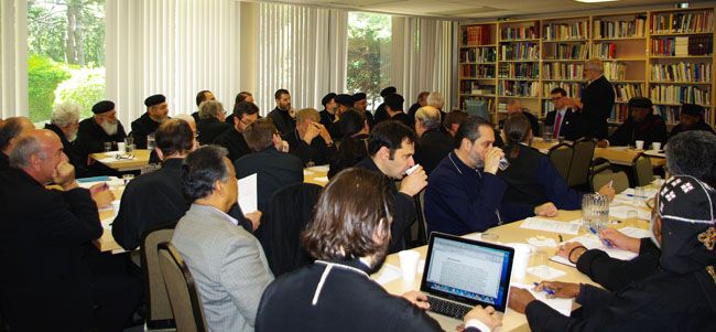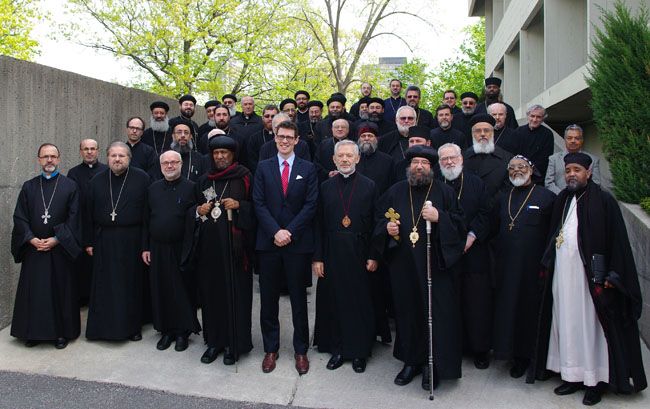 Along with His Eminence Metropolitan Sotirios, who hosted the meeting, other Hierarchs attending were His Eminence Archbishop Matthias of the Ethiopian Orthodox Church; His Grace Bishop Mina of the Coptic Orthodox Church; and His Grace Bishop Christoforos of the Greek Orthodox Metropolis of Toronto. Over 55 Priests and Deacons were also in attendance. From the Eastern Orthodox Churches, Clergy were present from the Greek Orthodox; Ukrainian Orthodox; Serbian Orthodox; Romanian Orthodox; Bulgarian Orthodox; Georgian Orthodox; and Russian Orthodox Churches. From the Oriental Orthodox Churches, Clergy were present from the Armenian Orthodox, Coptic Orthodox, Ethiopian Orthodox, and Syrian Malabar Orthodox Churches. Also in attendance was Ambassador Andrew Bennett, Head of the Office of Religious Freedom of the Government of Canada, who was specially invited by His Eminence Metropolitan Sotirios to attend this meeting.
