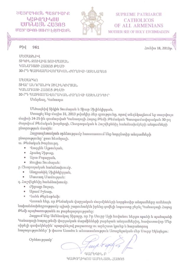 We are confident that the newly elected members of the Diocesan Committees will contribute to the well being and success of the Canadian Armenian Diocese.