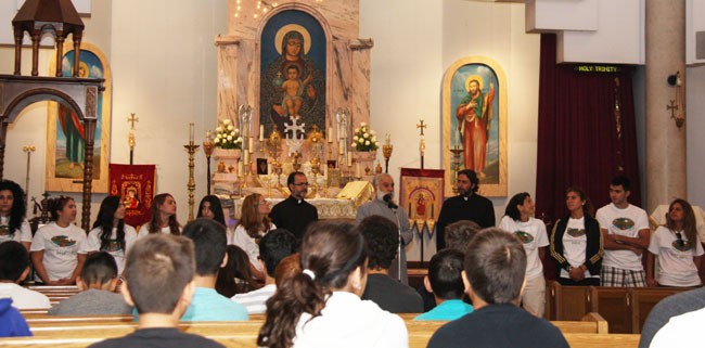 His Eminence started early by meeting with the campers, staff & volunteers of Ararat Summer Youth Camp, who were leaving for a week of camping near Kingston, Ontario. Before departure, everyone gathered inside the church; following the prayer, Archbishop Nathan gave his fatherly advice to children, blessed them all and wished them safe and happy week of camping.