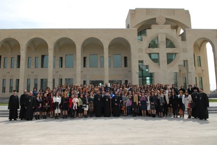 His Holiness Karekin II, Supreme Patriarch and Catholicos of All Armenians, presided over the gathering of 120 wives of priests. Presentations for the day included such topics as “The Role of the Yeretzgin in Pastoral Life” and an overview of the “Light to Children” education project undertaken by yeretzgins in the Aragatsotn diocese.