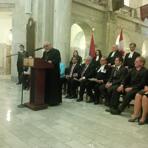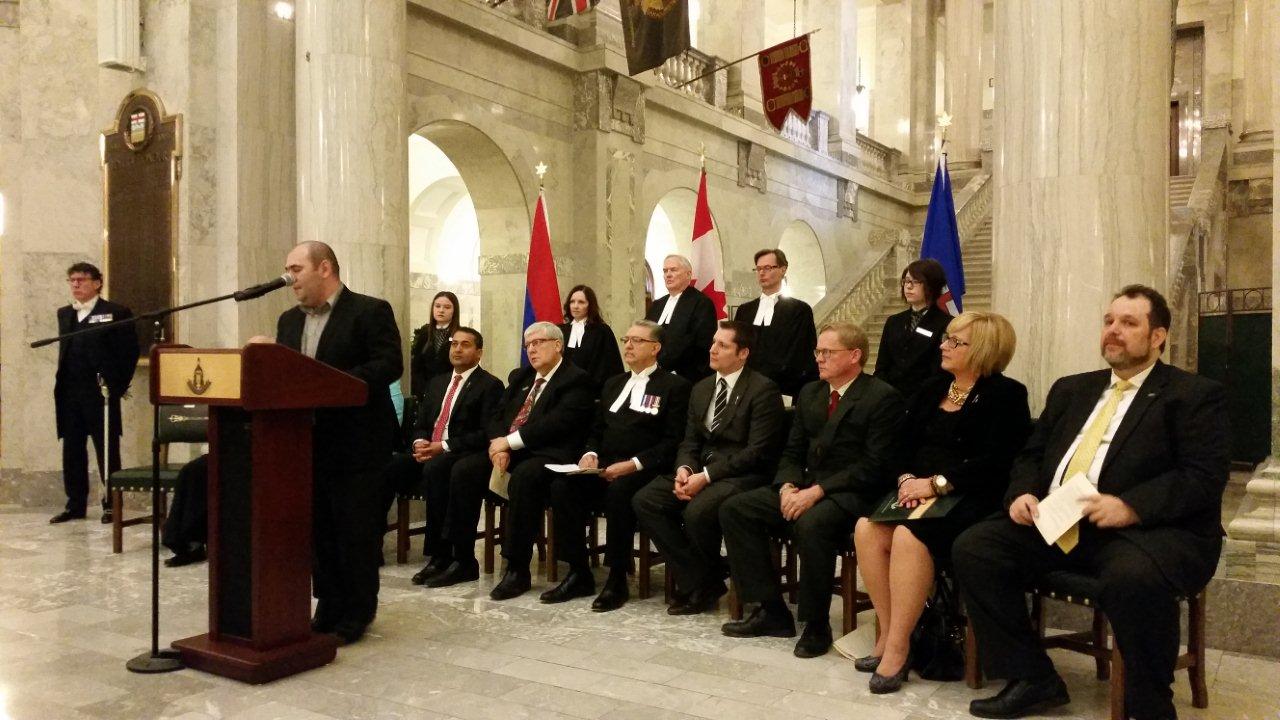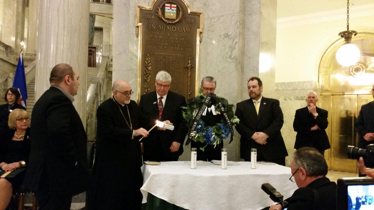 On May 5, 2014 the Alberta Legislature recognized the Armenian genocide of 1915. The commemoration ceremony was held in the main rotunda of the legislative building and was hosted by the Honorable Gene Zwozdesky, the Speaker of the Legislature. The two members of the Legislature, Mrs. Janice Stretch MLA for Edmonton Decore and Ms. Mary Anne Jablonski, (a