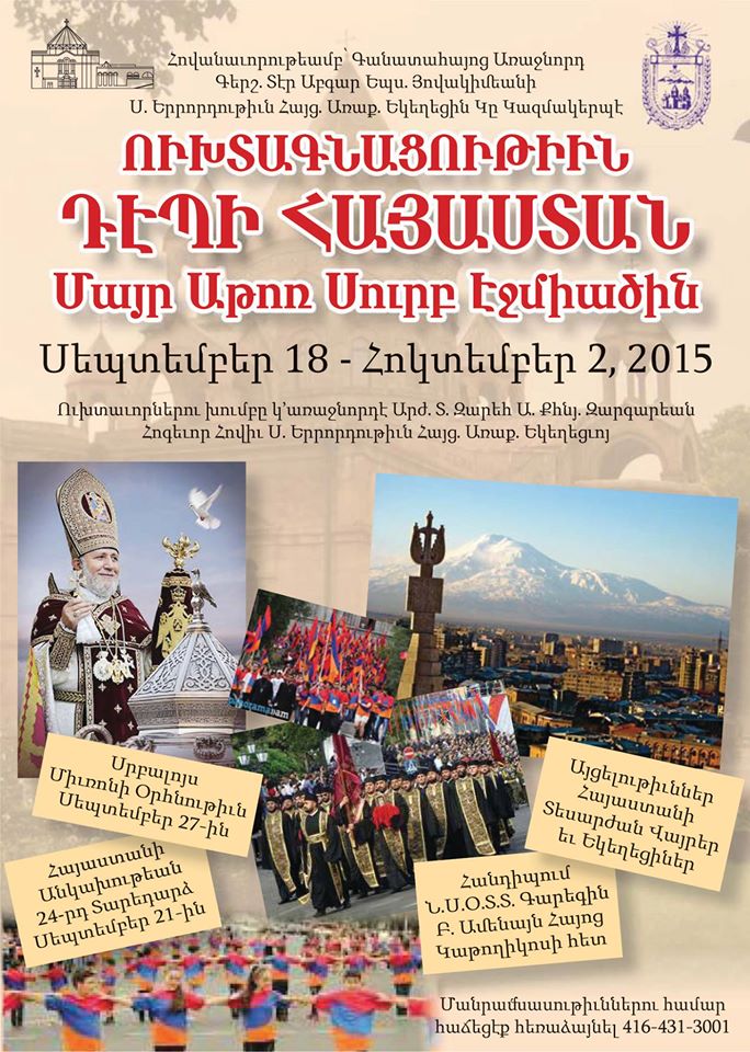 11018662_933122873366971_3287608922187013421_oThe Holy Trinity Armenian Church is organizing a Pilgrimage to the Republic of Armenia Mother See of Holy Etchmiadzin