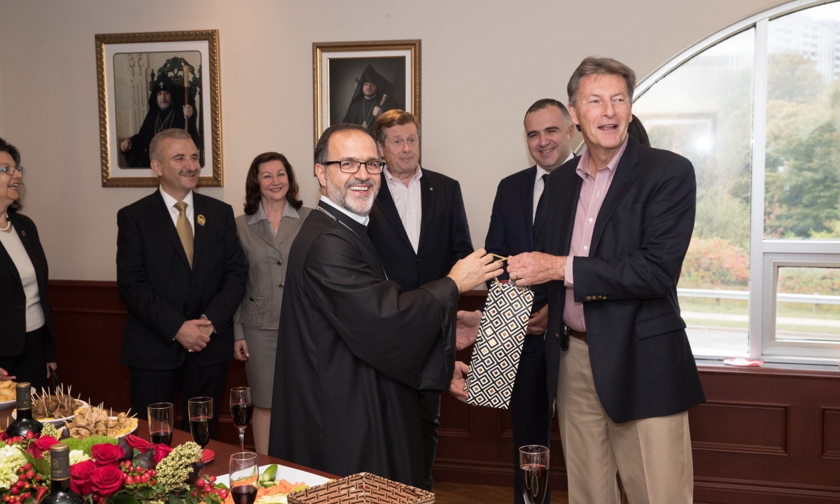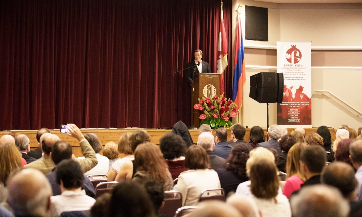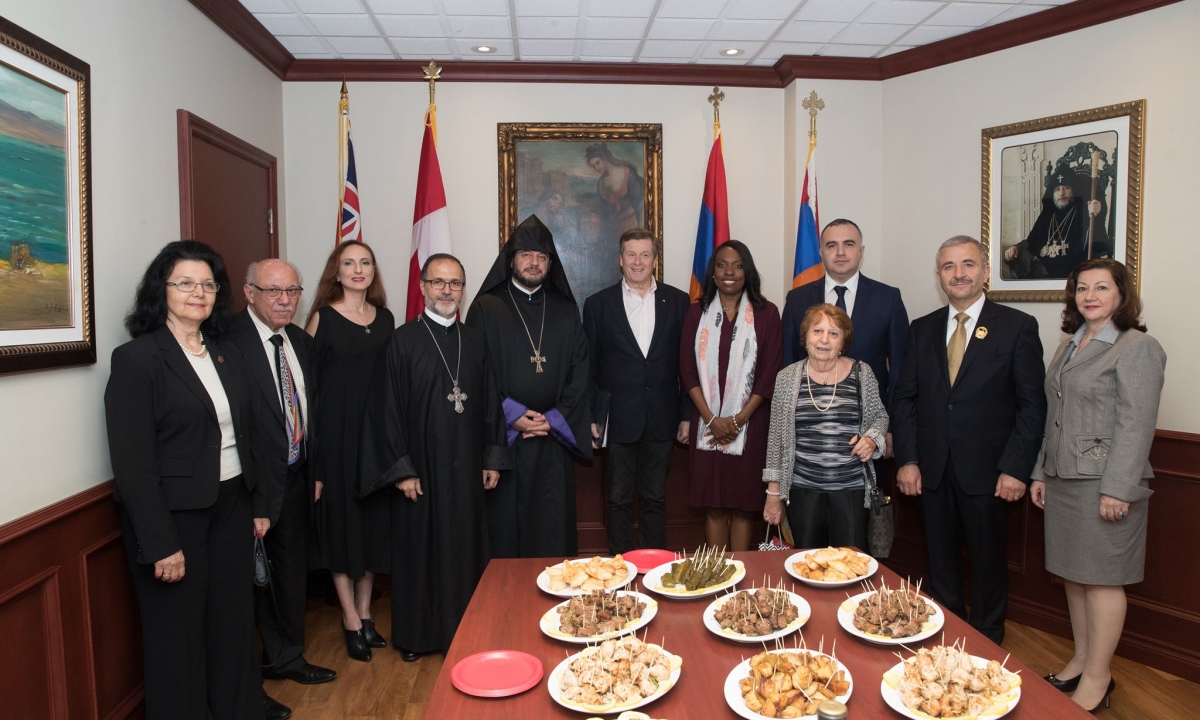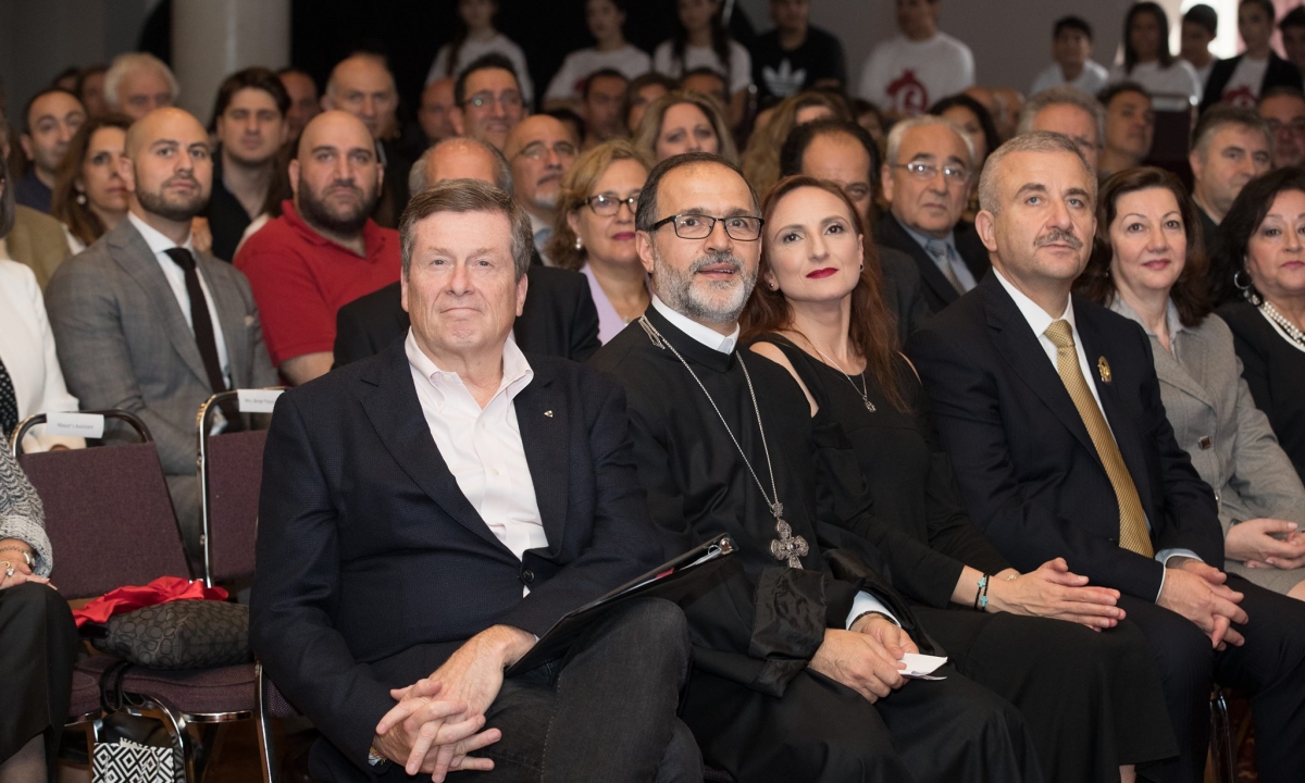 The honorable guests in attendance were H.E. Mr. Levon Martirosyan, Ambassador Extraordinary and Plenipotentiary of the Republic of Armenia to Canada, Hon. John McKay, MP, Hon. Mitzie Hunter, Minister of Education in Ontario, His Worship John Tory, Mayor of Toronto, Mr. Berdj Richard Sevazlian, Honorary Consul of the Republic of Armenia in Ontario, Mr. Sasun Hovhannisyan, Third Secretary, Consular Affairs, Mr. Khoren Mardoyan, Representative of the Development Foundation of Armenia in Canada, Mr. Aris Babikian, Scarborough-Agincourt PC Candidate, Mrs. Apet Alpay, Chair of Diocesan Council, Mr. Ohan Ohanessian, Chair of Holy Trinity Armenian Church Parish Council and various representatives of Armenian churches, political, benevolent, educational and cultural organizations of Toronto.