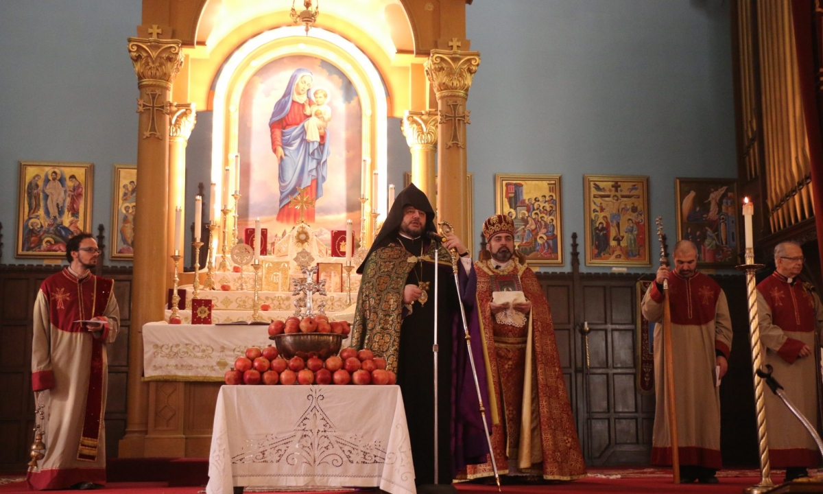 On January 1, 2019, His Grace Bishop Abgar Hovakimyan, Primate, assisted by Rev. Fr. David Margaryan, Parish Priest of St. Gregory the Illuminator Armenian Cathedral of Montreal, following the New Year Divine Liturgy, conducted the pomegranates blessings rite at the Diocesan Cathedral.