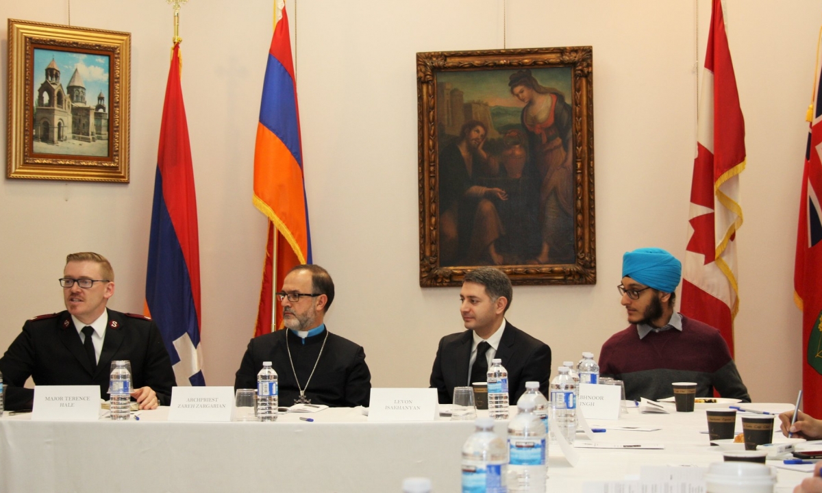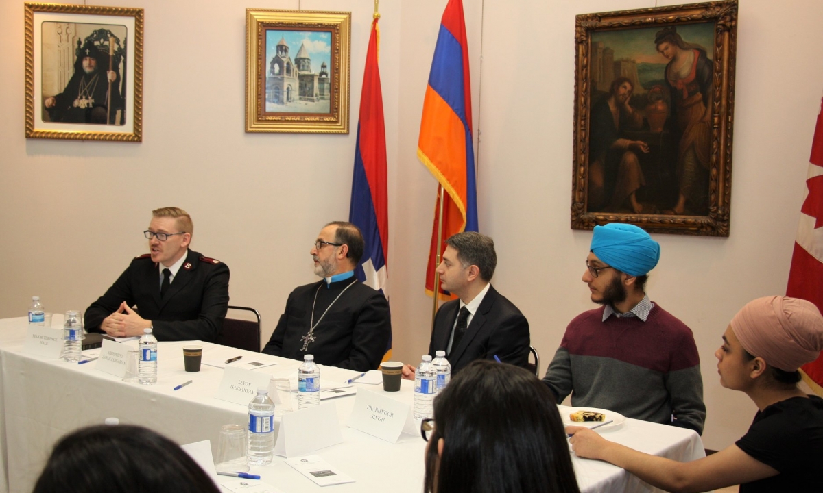 Tout au long de la semaine, des jeunes et des membres du clergé de 17 communautés religieuses différentes, représentant le Christianisme, le Judaïsme, l’Islam, le Sikhisme et le Bouddhisme se sont rassemblés sous le patronage de l’Evêque Abgar Hovakimyan, Primat, à l’Église arménienne de la Sainte Trinite de Toronto, pour échanger des idées sur leur religion respective et pour délibérer la diversité religieuse du Canada.